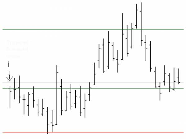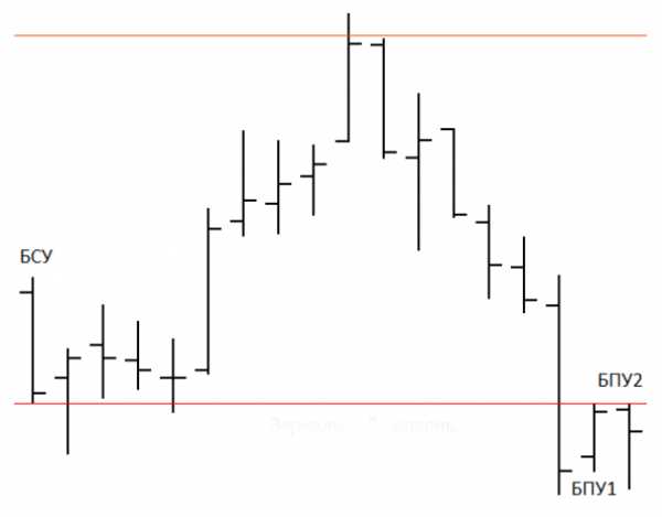 БПУ (бар, подтверждающий уровень) – следующий за БСУМежду БСУ и БПУ1 может находиться любое количество баров, они могут находиться по разные стороны уровня от уровня, но между ними не должно быть никаких зазоров, то есть они должны “биться” в уровень пункт-в-пункт.