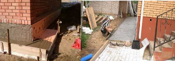 -Технологичность. Создание цоколя на ленточной основе совмещается с создание отмостки.