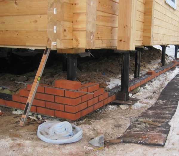 Кирпичная закладка цоколя на винтовых сваях