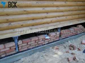 Этап №3 Создание отдушин, подведение кирпичной кладки под бревно