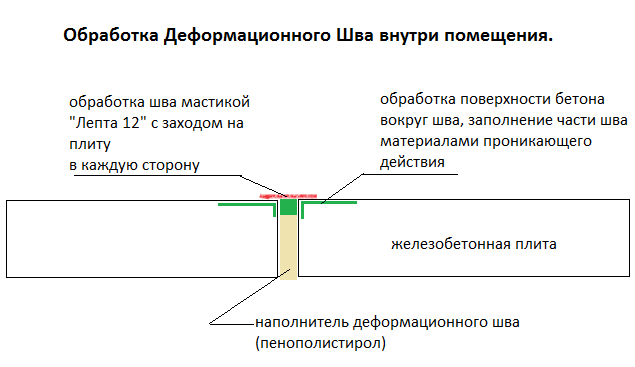 Способствуют движению стяжек в отношении колонн, стен и оснований. Изолирующий материал заполняет шов, он должен быть восприимчив к пластическим деформированиям без разрушения, то есть, он должен стягиваться. Шовную толщину нужно рассчитывать, учитывая величину линейного расширения стяжки. Как правило, шов толщиной 1,3 см.