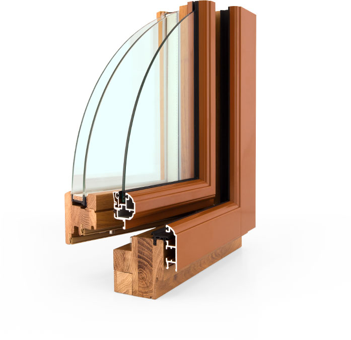 Есть также вариант изготовления деревянных окон, при котором внешняя поверхность окна защищена алюминиевым профилем. Его преимущества — высокая защита дерева от ультрафиолета, влияния дождевых осадков и снега.