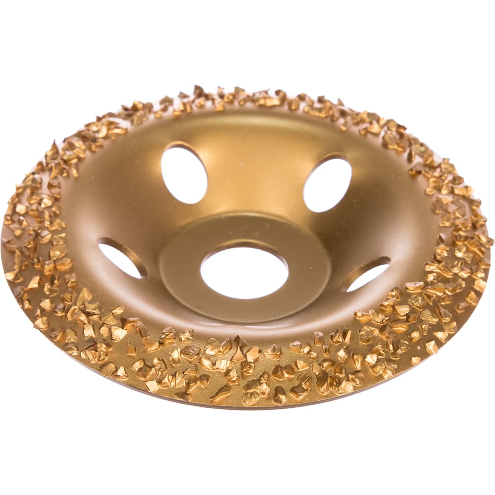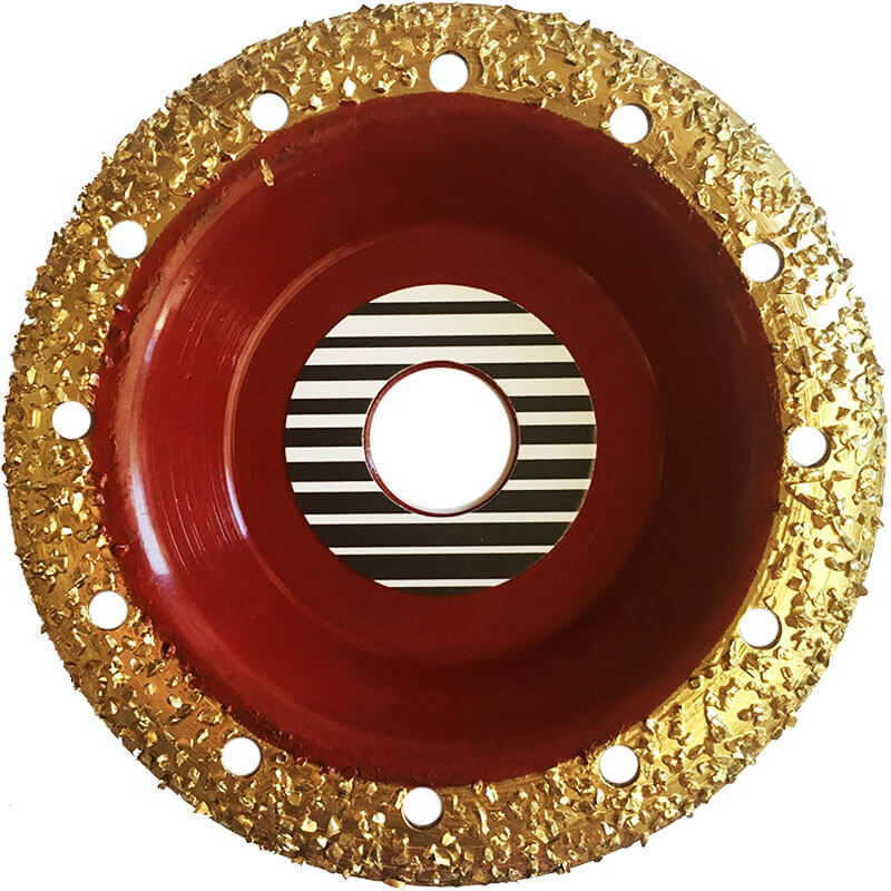 Следующая категория моделей кругов для болгарки – обдирочные. Данные насадки предназначены для проведения обработки на поверхности заготовки. Например, для снятия коры, удаления большого количества грязи или выравнивания заготовки. Сами по себе операции по обработке куда безопаснее, чем осуществление резки древесины. Поэтому УШМ для обработки дерева можно смело применять, но не забывать о специальных насадках. Принято выделять несколько видов обдирочных насадок. Среди них можно выделить обдирочные диски с шипами или абразивной крошкой. Фрезы с абразивом бывают разного размера. Благодаря им можно стачивать заготовку с торца или снимать верхние слои.