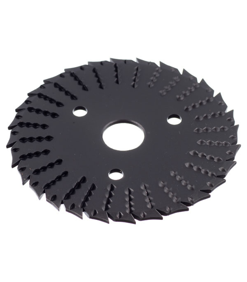 - Циркульный круг. Данная насадка представляет собой круг с зубьями. Обычно такие имеют максимальный диаметр до 180 мм. На больших кругах присутствуют напайки. Существуют круги более компактные, у которых напайки отсутствуют. Вообще, циркульные диски считаются «опасным» вариантом насадки на шлифовальную машину для обрезания деревянных заготовок. Поэтому желательно выбирать циркулярные диски, у которых предусмотрена защита от заклинивания его в материале. Это осуществляется за счёт того, что зубья на данном варианте диска немного разведены в стороны.