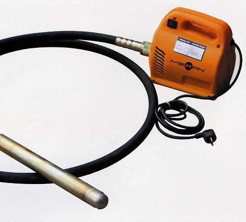 - виброуплотнители высокой частоты, приводимые в движение от мотора с частотой до 200 Гц. Преобразователь напряжения снижает питание двигателя до 42 В и обеспечивает безопасность бетонных работ;