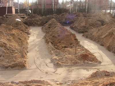 Песчаную подушку можно считать качественно выполненной лишь в тех случаях, когда учитывался уровень поземных вод. Кроме того, крайне важно учитывать и возможные изменения данного показателя, происходящие со сменой сезона. Если вы имеете дело с высоким уровнем, то существует необходимость в обустройстве дренажной системы. В принципе, его возведение не помешает и в других случаях. С этой целью необходимо выкопать траншею на протяжении всего периметра воздвигаемой постройки. Она будет защитником конструкции от талых вод. Кроме того, при обильных осадках уровень подземных вод также повышается, дренажная система справится и с этой проблемой. Необходимо грамотно гидроизолировать траншею. Полученный дренаж также воспрепятствует попаданию воды в подвальные помещения.
