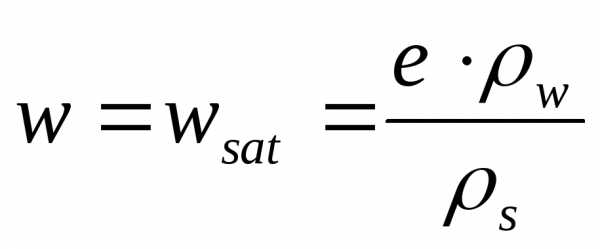 Эта формула пригодна для грунта с любой водонасыщенностью, то есть при полном и неполном заполнении пор водой (в этом случае считается, что воздух, имеющийся в грунте, не замещается водой). Удельный вес грунта, но с полностью заполненными водой порами (w=wsat), то есть когда