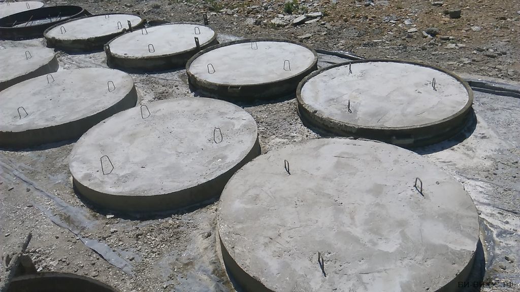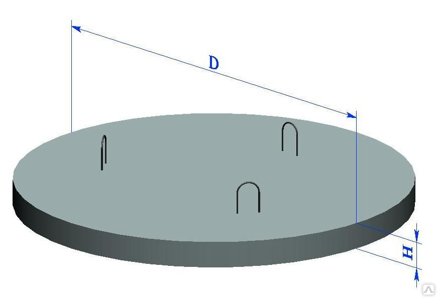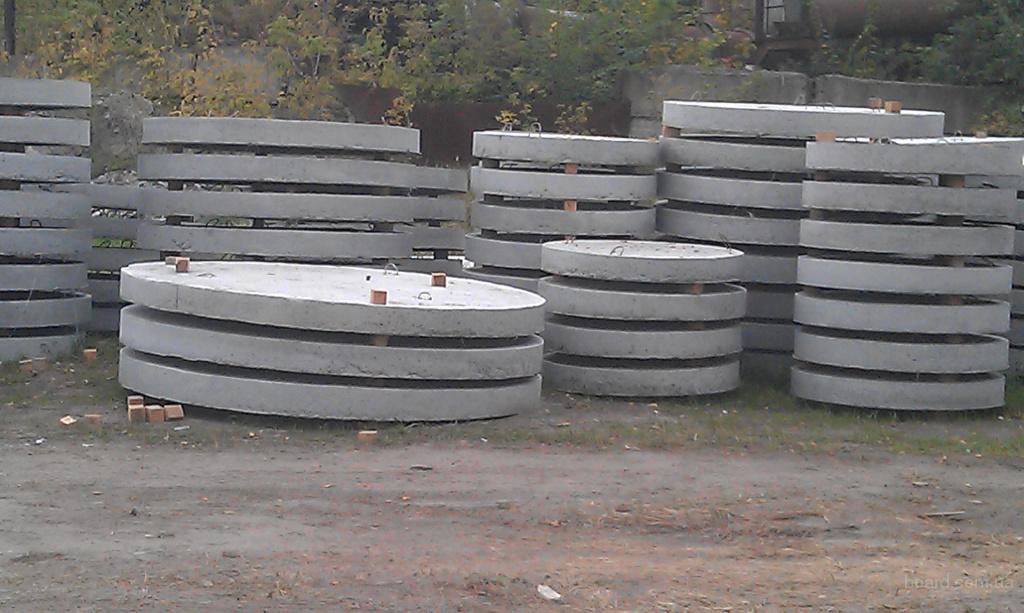 Конструктивно днище представляет собой плиту круглой формы, которая по размеру соответствует диаметру колодца. Такая плита при эксплуатации испытывает значительные нагрузки, в том числе и от веса самого колодца, в связи с чем изготавливают ее из особотяжелого бетона М200 с прочностью на сжатие не ниже класса В15.