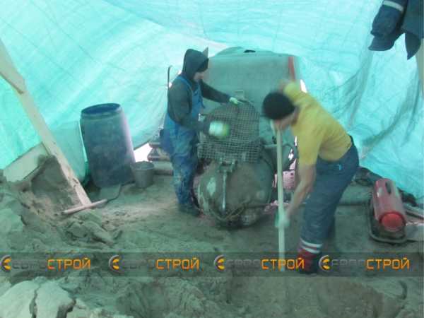 Порядок действий при работе в мороз выглядит следующим образом:- Первым делом вырывается котлован или траншея.