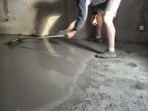 Вся площадь помещения заливается равномерно, не делая перерывов. Разравнивание раствора выполняется при использовании правило. В последующем останется только произвести затирки поверхности и оставить на определенное время для высыхания.