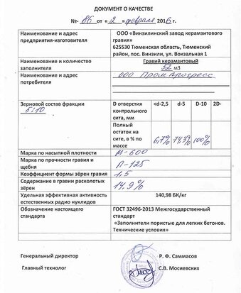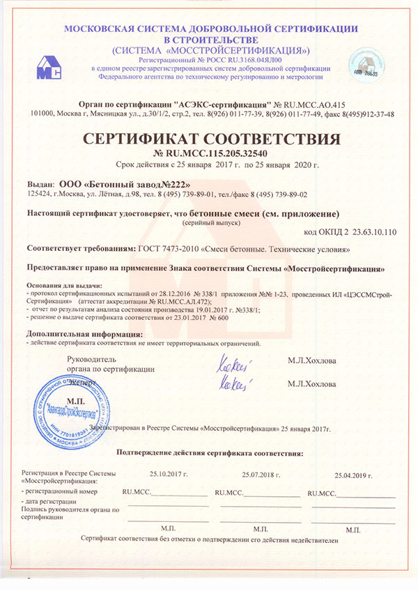 оформления сертификата на цементно-песчаную смесь;- получения готового документа клиентом.