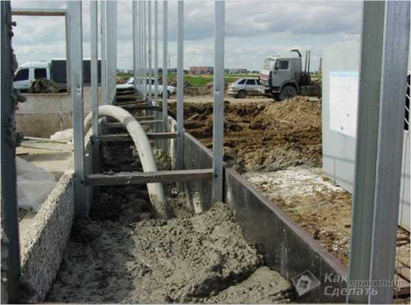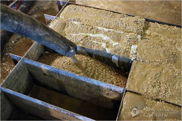 - После выгрузки в опалубку раствора, его необходимо хорошо уплотнить, чтобы стены получились без пустот.