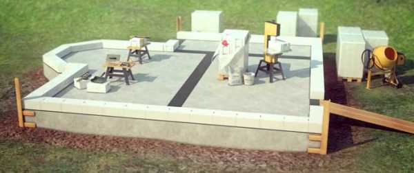 Основание для дома можно построить самостоятельно, но мероприятие это трудоемкое в связи с большим объемом земляных работ, поэтому лучше нанять бригаду рабочих. Бетон для заливки рекомендуется приобрести в строительных компаниях, которые доставят его на стройплощадку по времени в специальных машинах.