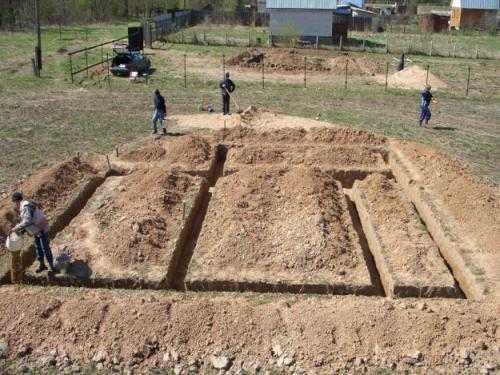 Для работы вам потребуются лопаты и рабочая сила, так как самому все работы сделать будет не только тяжело, но и долго. В крайнем случае, если позволяют обстоятельства, можно нанять специальную технику. Стенки траншеи нужно сделать вертикальными, а дно – ровным. Чтобы проверить это, в процессе рытья пользуйтесь отвесом, так как исправить что-то после завершения будет сложнее. Глубина фундамента зависит от грунта и этажности здания. Он может быть малозаглубленный – от 50 до 70 см для небольших домиков, и заглубленный – от 1 до 2 м.