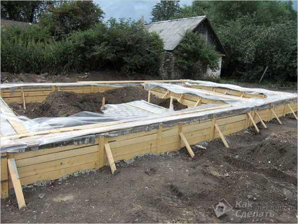 Этот этап включает в себя не только устройство опалубки, но и проведение нужных коммуникаций. Ведь если не сделать это заранее, отверстия под канализацию или водопровод нужно будет делать в готовом фундаменте.