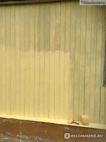 Данная краска рекомендовалась в магазине как одна из наиболее надежных и качественных для покраски наружных деревянных строений. Производитель обещает, что краска будет держаться в течение десяти лет при правильном ее нанесении. Как правильно подготовить поверхность написано в инструкции на упаковке. Там все, как обычно. Полностью очистить поверхность, высушить, обезжирить, при необходимости зашпаклевать. Так же рекомендуется использовать грунтовку.