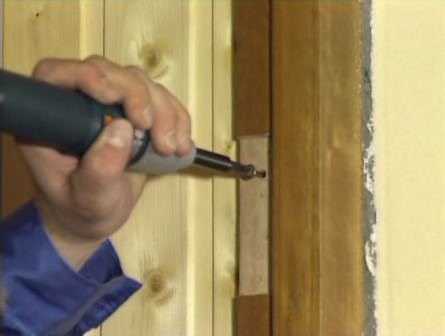 Перед монтажом электролобзиком вырезают отверстия под глазок, ручку, замочную скважину. Внутреннюю облицовочную панель крепят к деревянному каркасу с помощью саморезов, имеющих декоративные шляпки. Расстояние между крепежными элементами составляет 30-40 см. Ставят на место всю снятую ранее дверную фурнитуру.