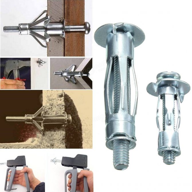 2. Дюбели бабочка. Используются в тех случаях, когда поверхность бетона тонкая. После захода шурупа во втулку задняя сторона гильзы сворачивается. Это способствует надёжной фиксации крепежа.