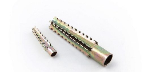 Деталь представляет собой спиралевидную втулку, на поверхности которой имеются ребра. В момент вкручивания шурупа они расширяются, благодаря чему крепко входят в мягкую поверхность основания. Такие крепления могут быть выполнены из оцинкованной стали или пластика.