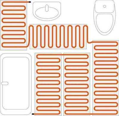 После того, как основание выровнено, составляется схема подключения системы подогрева пола под керамическую плитку. На схеме отмечается шаг, с которым будет производиться укладка греющего кабеля или матов. Схема должна учитывать следующие моменты: