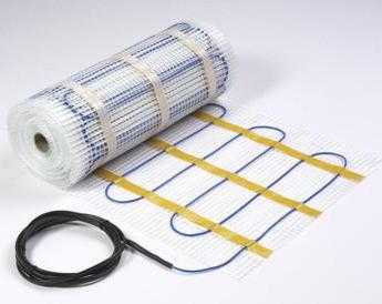 Вариант теплого пола подобного типа имеет маленькую толщину и является матом с сеткой, на котором закрепляется кабель для нагрева с сечением приблизительно 2,7 мм. Эту разновидность теплого пола достаточно просто устанавливать, потому что нагревающий кабель укладывается и фиксируется на основании. Процесс укладки будет заключаться только в раскладке и закреплении матов.