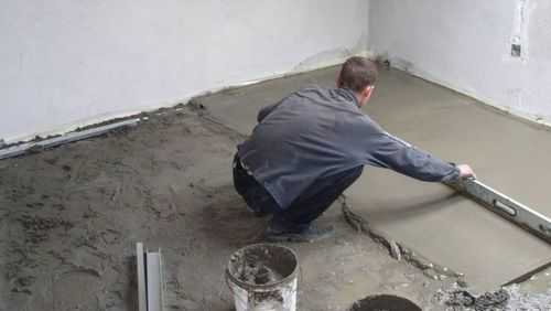 Перед началом работ всю поверхность в помещении нужно подмести и помыть. Если на ней есть неровности, их нужно удалить механическим путем. Если таким способом выровнять поверхность не удалось, то делают бетонную стяжку.
