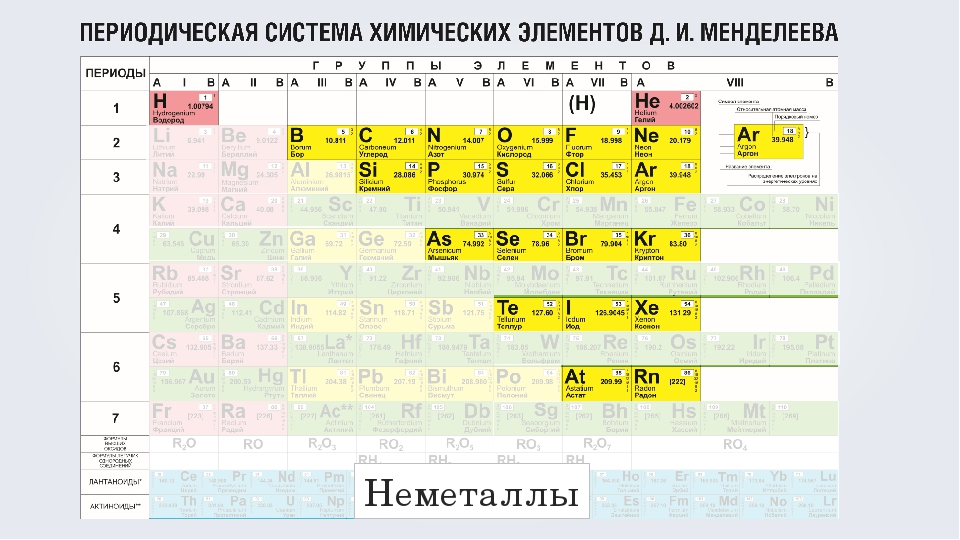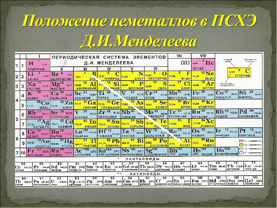 Вверху справа располагаются химические элементы неметаллы, которые образуют простые вещества с неметаллическими свойствами.