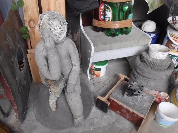 - Ждем пока раствор затвердеет и высохнет. Затем несколько раз нужно покрыть гнома цементно-гипсовым раствором, чтобы фигура не высохла слишком быстро, в противном случае снаружи раствор высохнет, а внутри останется сырым.
