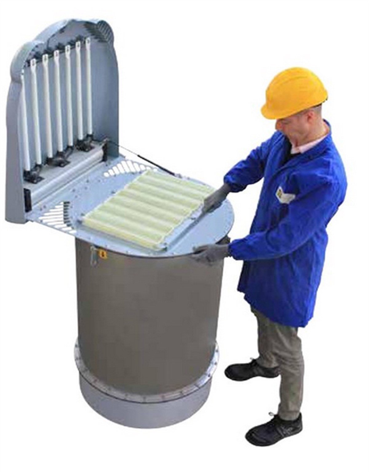 Система очистки картриджей встроена в округлую крышку, которая открывается с пневмофиксатором. Рама снабжена защитной решеткой.