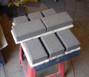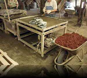 Весь процесс изготовления можно разделить на несколько этапов: изготовление бетона, фасовка по формам, укладка на вибростол, окончательная просушка.