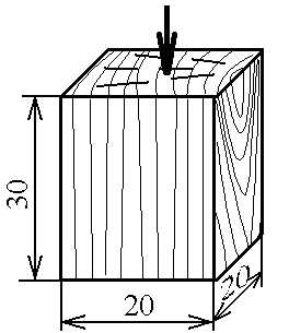 Определение условного предела прочности при местном сжатии поперек волокон. Используют образцы древесины сечением 20X20 мм и длиной вдоль волокон 60 мм. Направление годичных слоев должно быть параллельно длине образца. Испытание в радиальном и тангентальном направлениях производят на разных образцах. Каждый образец измеряют с точностью до 0,1 мм.