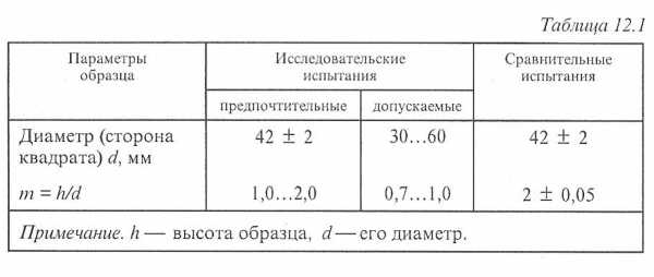 После раскалывания образца, кусочки кубической формы, предварительно измерив их, помещают между плитами пресса, определяют разрушающую нагрузку.