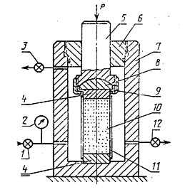 Рис. 16. Схема гидравлического пресса для испытаний образцов на сжатие