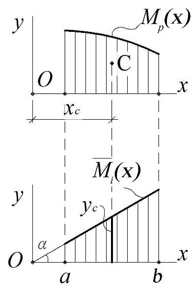 подразумевает, что направление фактического движения совпадает с направлением единичного удара. В частном случае, если оба графика MF и MK линейны, то одна из областей может быть умножена на соответствующую ординату. Согласно правилу Верещагина, если и участок, и МК имеют криволинейные формы, или жесткость стержней в рассматриваемых областях переменная, то в сложном контуре участка М ф или М р невозможно определить смещение, они делятся на простые участки,а площадь и расположение центроида известны.