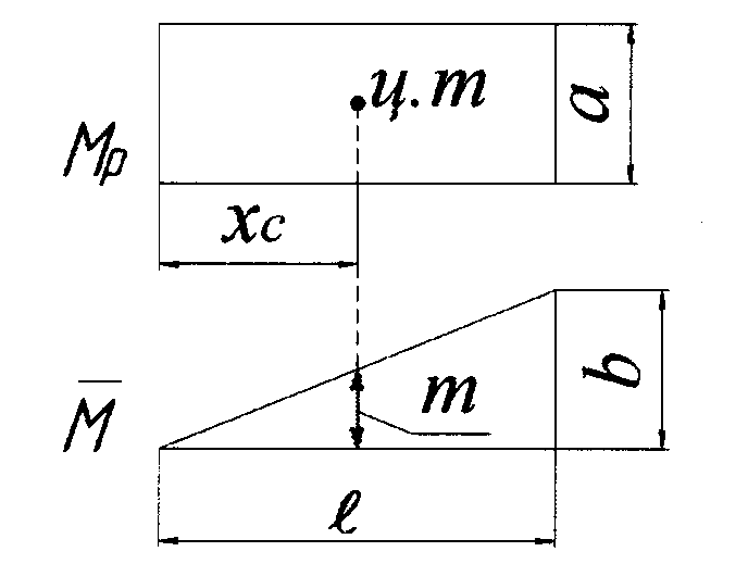 Если жесткость поперечного сечения стержня на участке постоянна, то каждый интеграл формулы Максвелла — Мора (185) можно подсчитывать через произведение площади ю эпюры усилия от заданных сил (рис. 167) на координату эпюры такого же усилия от единичной фиктизной обобщенной силы (обязательно прямолинейной), приходящейся против центра тяжести первой эпюры. Практически это тавило Верещагина применяют для определения линейных и угловых перемещелий в балочно-рамных системах от действия изгибающих