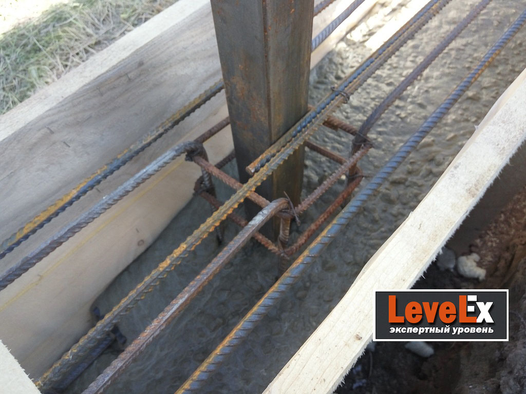 Обычно этот тип фундамента применяется к колоннам и стойкам тяжелых конструкций. Ростверк изготавливается из стали I I сечения (R.S.J), размещенной в одинарном или двойном большом.
