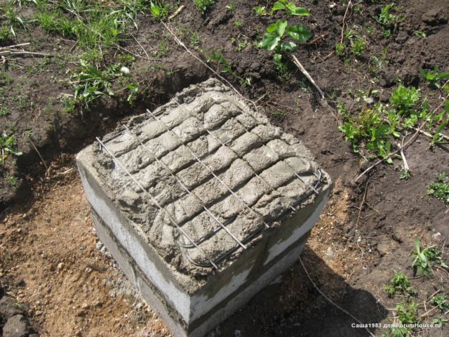 Столбчатые фундаменты бывают двух типов — это основание из блоков и буровых свай. В качестве основы для блоков нередко используется обычный кирпич, но его применение допустимо только в крайнем случае, если постройка имеет минимальный вес, а грунт достаточно стабилен. Стандартом, согласно ГОСТ 6133-84, при обустройстве столбчатого основания является применение специальных фундаментных блоков 20х20х40 см. Что касается буровых свай, то они, как правило, изготавливаются из бетона, залитого в асбестоцементные трубы, которые вкопаны в землю ниже глубины промерзания грунта.