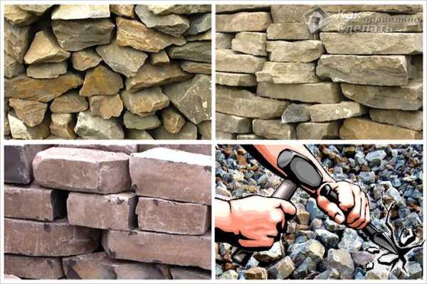 Чтобы фундамент из камня получился надежным и крепким, а работать было легче, выбирают камни плоской формы. Большие глыбы горной породы раскалывают на месте строительства или обтесывают.