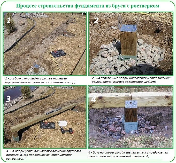 Также стоит отметить, что процесс возведения фундамента из деревянных шпал своими руками абсолютно такой же.
