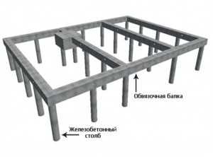 - железобетонные столбы, забиваемые в виде специальных свайных полей. Под капитальные стены, армированные бетонные опоры погружают рядами, под опорные колонны – кустовыми группами, а под отдельные стойки монтируют индивидуальные столбы. Уложенные на сваи ростверки объединяют конструкцию в монолитную основу;