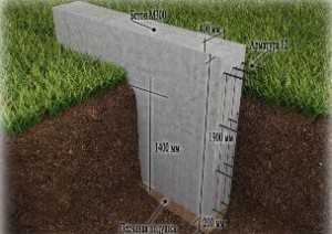 - Сечение ленты нужно принять в виде трапеции, опирающейся на широкое основание, или сделать Т-образное уширение подошвы ленты. Эти меры приведут к увеличению площади подошвы фундамента, и как следствие – к снижению удельного усилия на фундамент от грунта.