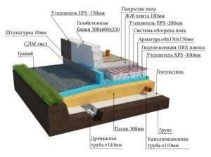 6 — Утепление плиты пола, обычно пенополистирол марки ПСБ-С-35 толщиной от 200 мм.