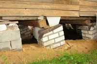Опорно-столбчатый вариант фундамента очень похож на предыдущий, его отличает лишь то, что столбы в таком основании выступают в качестве опор для нижней обвязки дома, называемой ростверком.