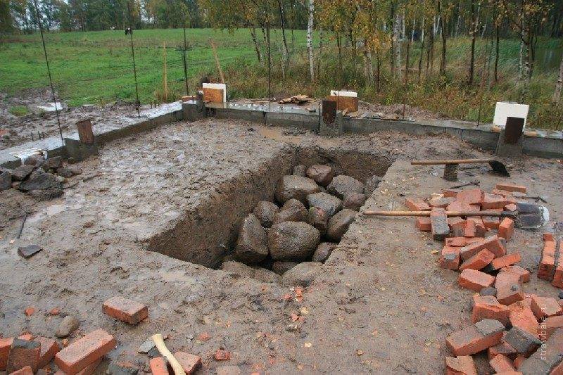- Фундамент под печь в бане