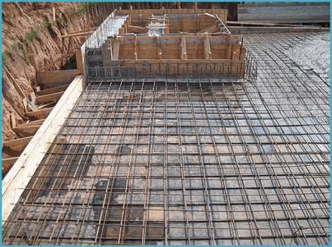 Для установки монолитного фундамента потребуется опалубка, в которую будет установлен металлический каркас. После этого в один заход будет произведена заливка бетона.