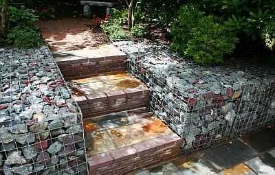 Габионы — элемент ландшафтного дизайна, архитектуры, арт-дизайна.