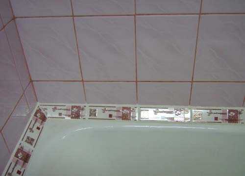 - После высыхания, отделать стык ванной и стены материалами, по своему усмотрению. Обычно в таких случаях наклеивают пластиковый плинтус или бордюр.