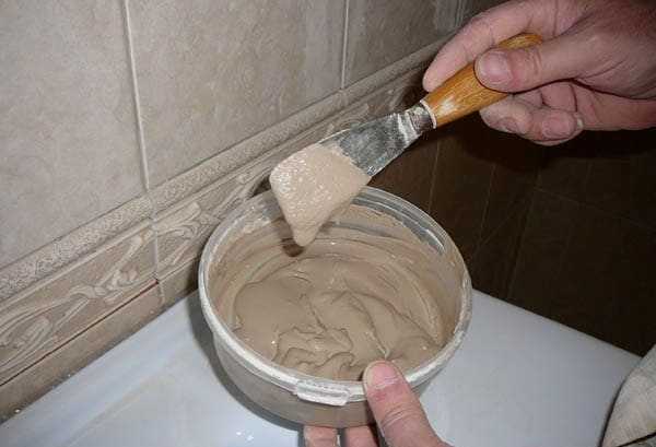 Кроме того в составе смеси содержатся специальные клеевые присадки, улучшающие её адгезию с гладкими поверхностями. Среди минусов такого способа следует отметить его низкую устойчивость к механическим воздействиям, поэтому затирку нежелательно использовать, если у вас установлена акриловая ванна.