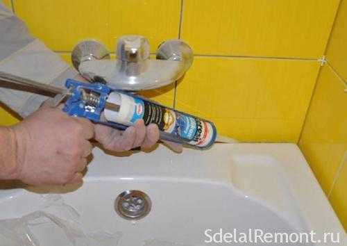 как загерметизировать стык между ванной, заделка шва уплотнителем по периметру