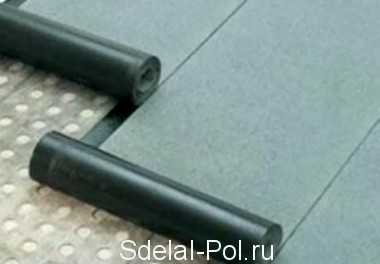 Сначала бетонная конструкция обрабатывается битумной мастикой, затем настилается покрытие, после тщательного разравнивания склеиваются стыки. - Наплавляемая.